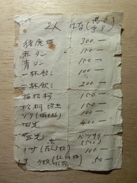 約40年前、祖母が私に書いて下さった、花札の点数表です。