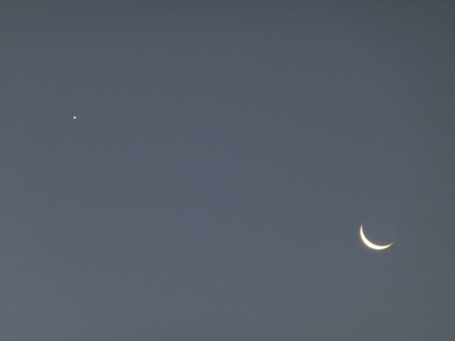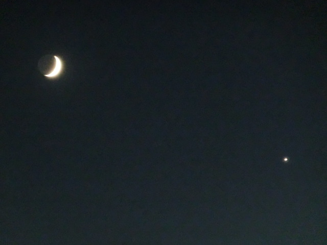 今日は1日好天に恵まれ、夕暮れ時の低い位置に出た月と金星も奇麗に見えました。