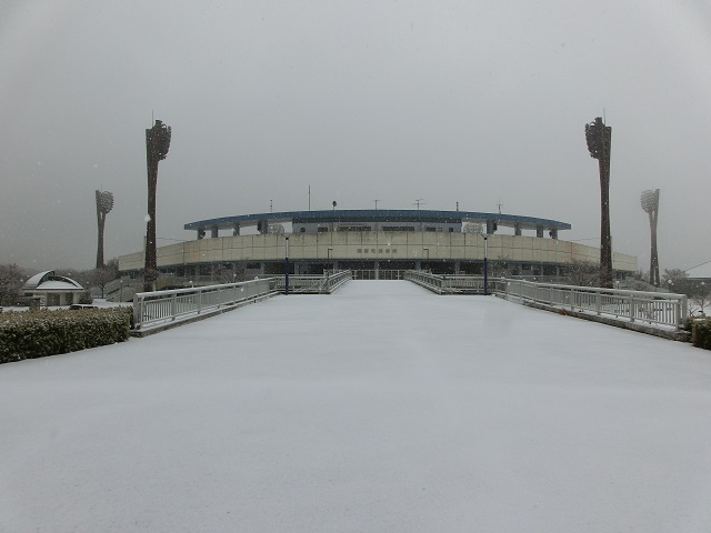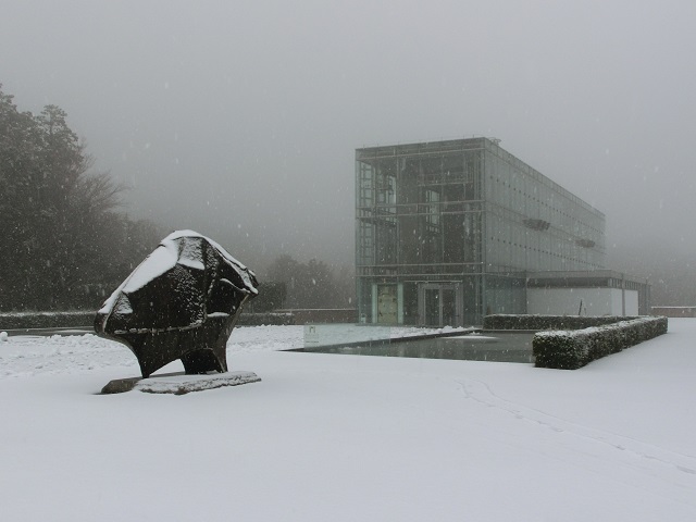 一時だけ雪化粧をした岡崎市美術博物館周辺の様子です。