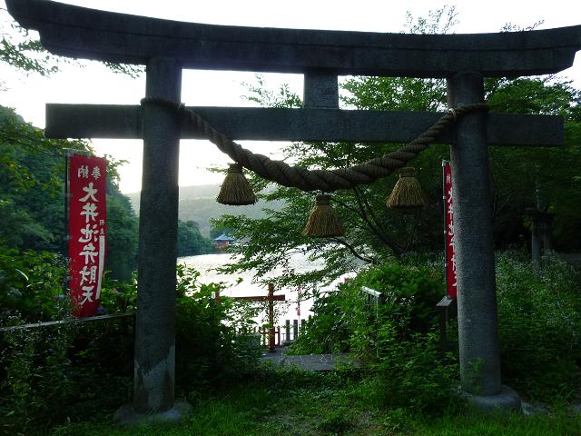 池の周囲には水上ゴルフ練習場(左写)、幸田神社(中写)、大井池弁財天(右写)がありました。