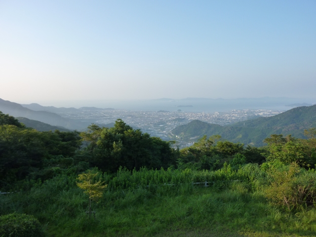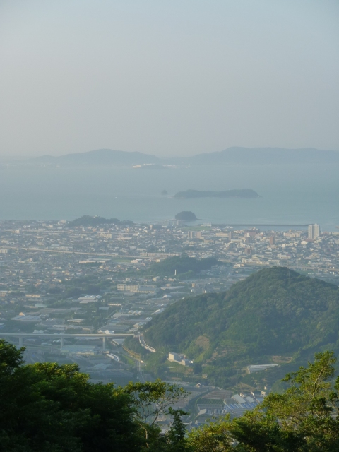 朝日に照らされる蒲郡市と三河湾も美しいですね。(中写)