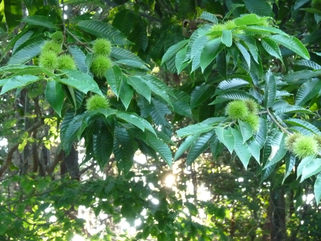 栗の実も朝日の下で見ると、色調が違います。(右写)