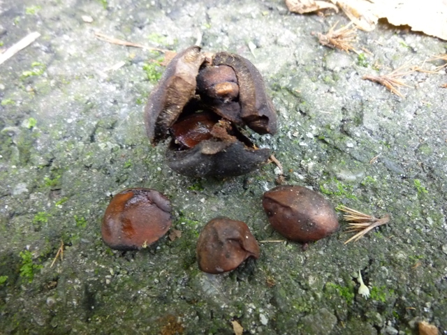 丸い殻に包まれていて、パカッと開くと種が5粒入っていました。