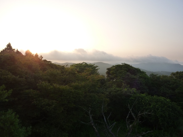 宮路山・五井山方面と朝日。(左写)