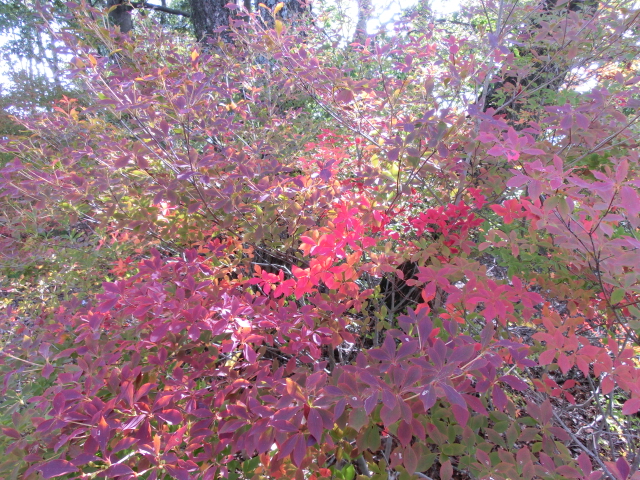 太陽の丘に植樹されているドウダンツツジが、鮮やかに紅葉し始めていました。