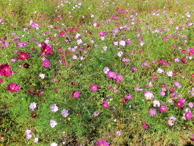 隣町の町民会館横にあるコスモス畑です。