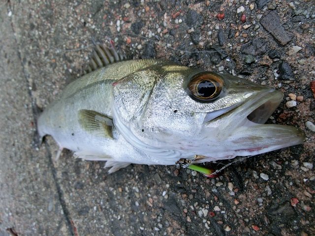 よく訪れる遠浅の場所に到着した時には、既に大分潮位が下がっており、釣りに残された時間は短かっかったのですが、嬉しい事に今年初のセイゴを1匹釣り上げることが出来ました。!(^^)!
