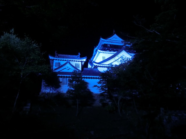帰宅時にホームセンターへ寄り道したところ、近くにあるお城がライトアップされており、青く浮き立っていました。